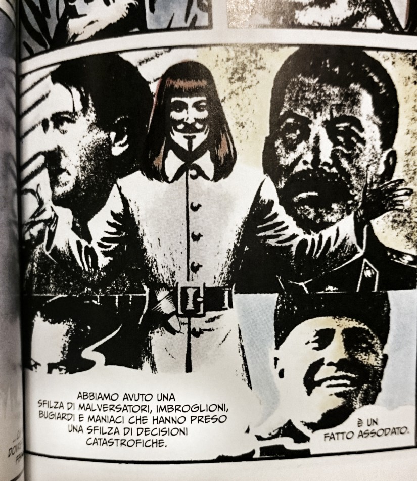 Concludo dicendo che V for Vendetta è un’opera assolutamente contemporanea che ci pone di fronte alle non troppo remote possibilità di governi totalitari e dittature in cui la popolazione è stata lentamente atrofizzata dai poteri forti.