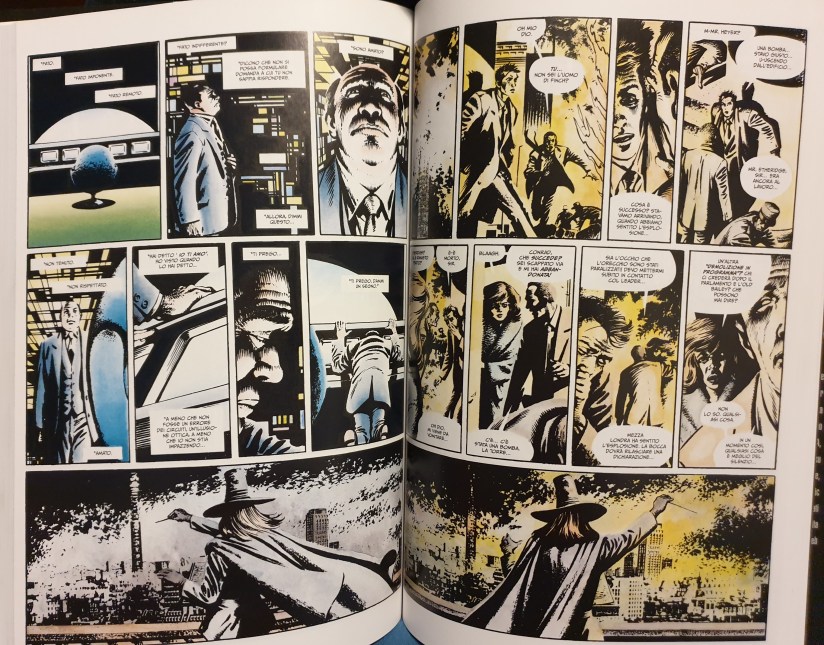 L’ambientazione è una Londra anni ’90 di un mondo distopico in cui, vige un regime totalitario di ispirazione Orwelliana. La scelta, innovativa per l’epoca, degli autori fu quella di non usare le classiche balloon per rappresentare i pensieri dei personaggi, né tantomeno riportare effetti sonori o utilizzare didascalie. L’intera storia è narrata tramite i dialoghi e le vignette.