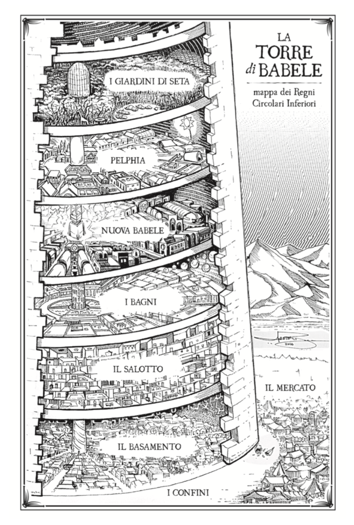 Gli elementi magici in questo primo capitolo della serie sono pressoché inesistenti, per questo preferisco definirlo steampunk e non fantasy. L’ambientazione è davvero molto interessante, tutte le vicende si svolgono all’interno ed all’esterno della titanica Torre di Babele, in una sorta di universo parallelo in cui questa perde tutte le connotazioni bibliche e in cui l’ambientazione storica non è ben specificata.